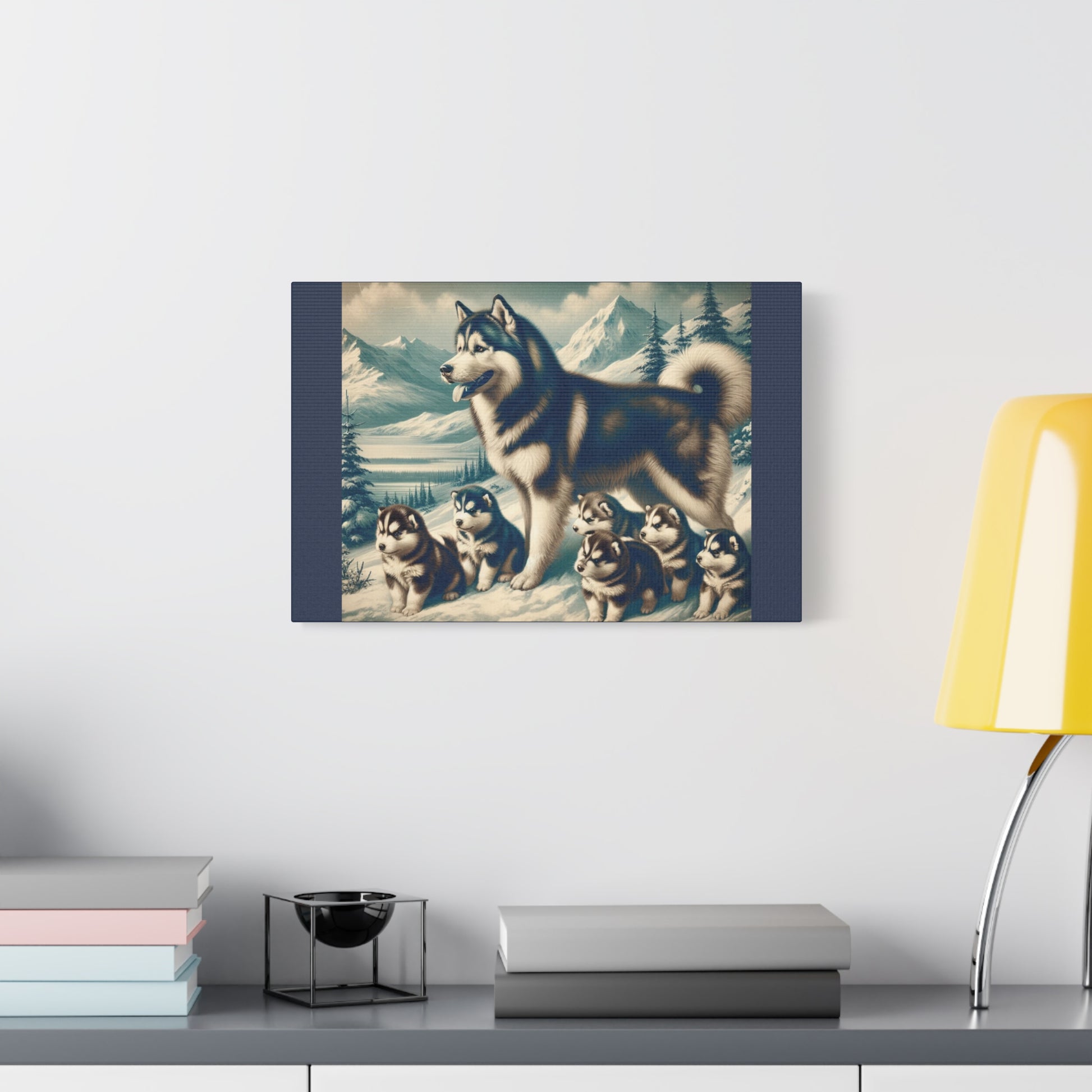 The Alaskan Husky Family Animal Wall Art is a nice Home Decor addition to any room. Animal Wall Art is a great gift idea for housewarmings, baby showers, and offices. Each wrap is made with finely textured, artist-grade cotton substrate that produces the image in outstanding clarity and detail.