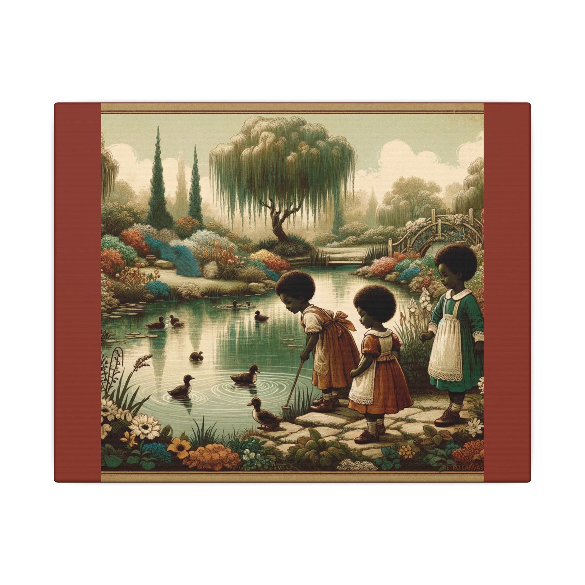 Explorez le côté ludique et la découverte avec l'art mural Enfants à l'étang sur toile tendue. L'art mural est une excellente idée de cadeau et convient à de nombreuses pièces de la maison et du bureau comme le salon, la chambre d'enfants et la chambre d'enfant.