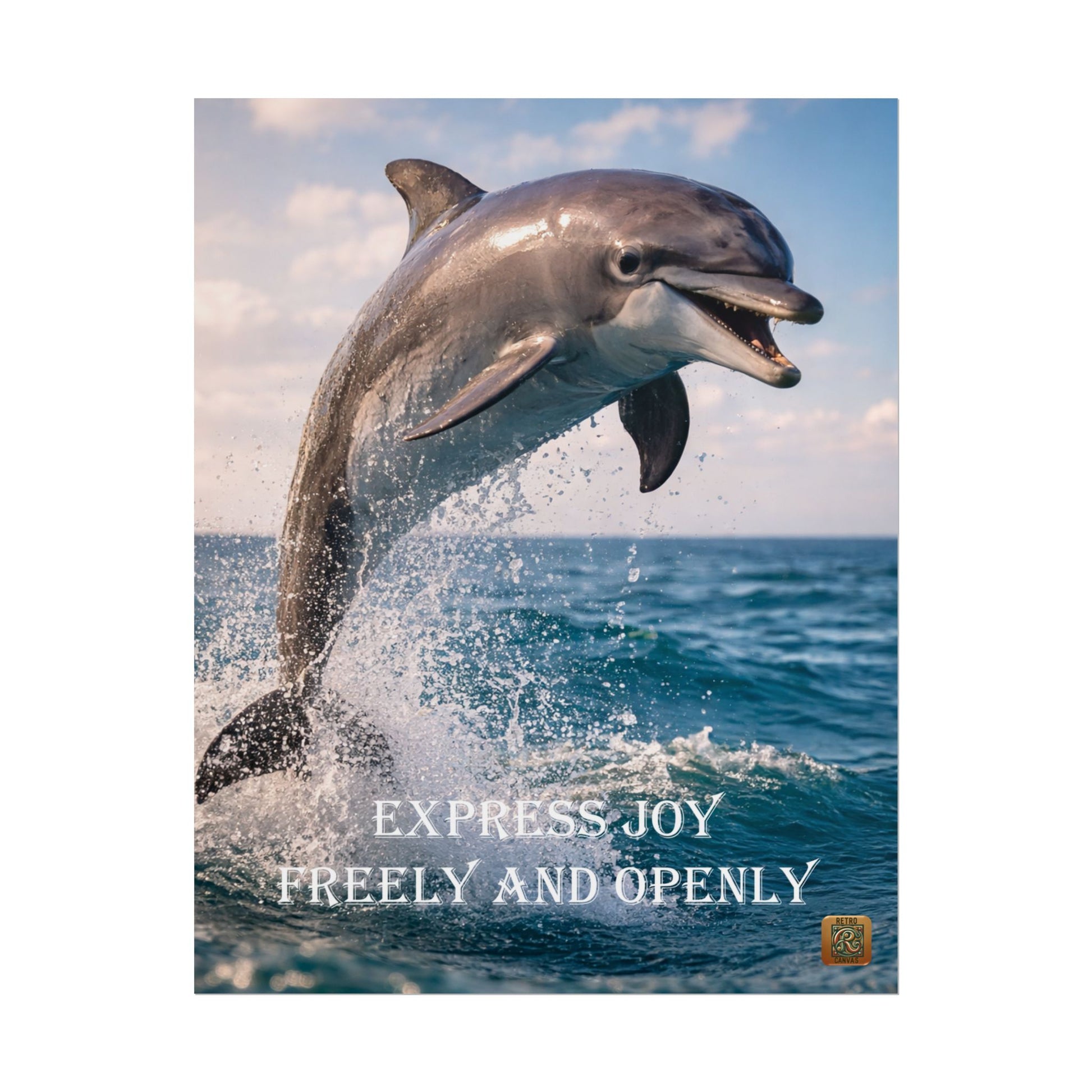 Dolphin Inspirational Poster — "Express Joy Freely and Openly" Motivational Ocean Wall Art