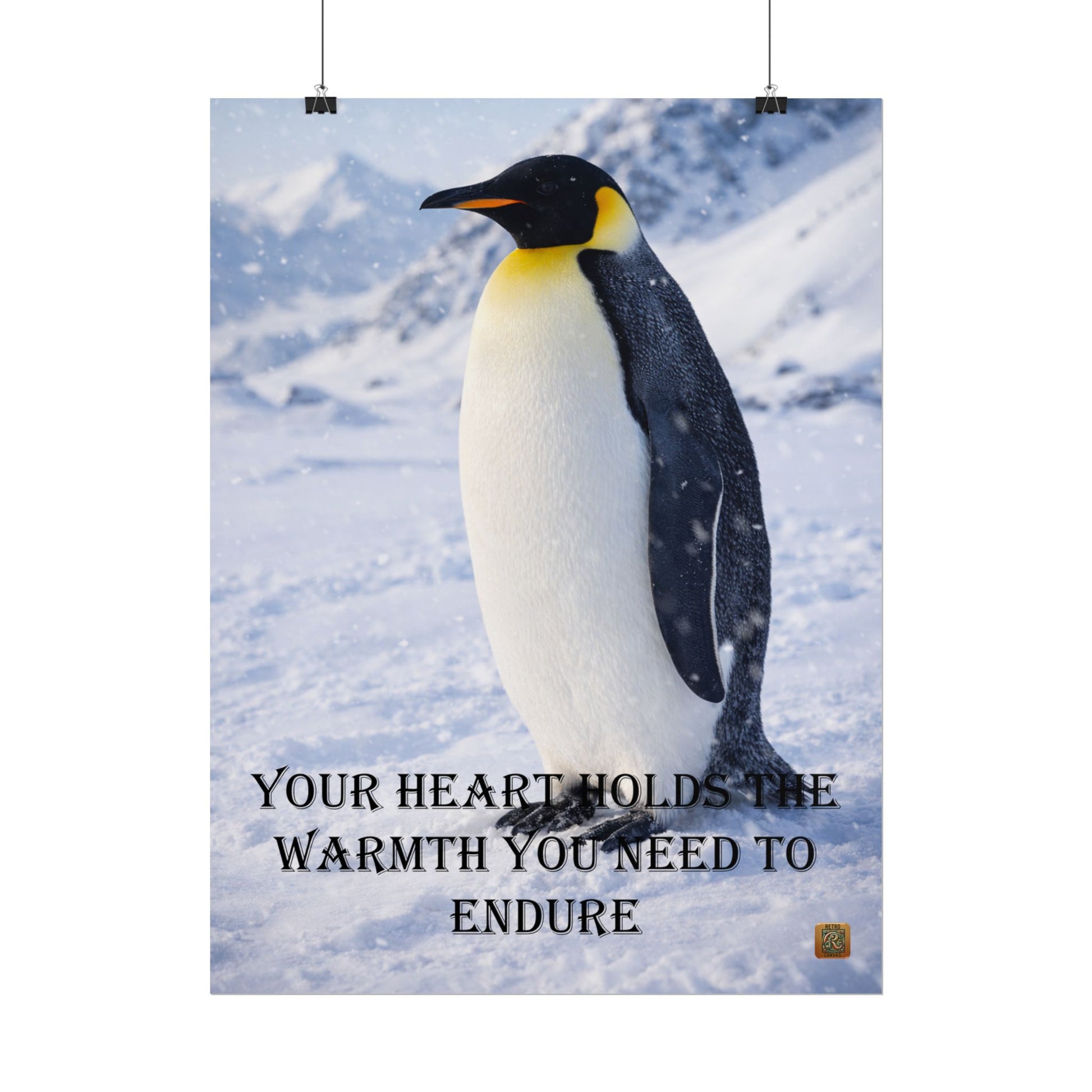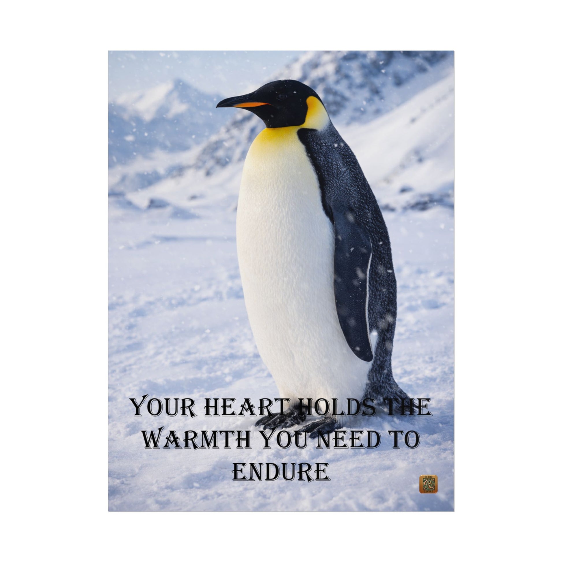 Penguin Motivational Poster — "Your Heart Holds the Warmth You Need to Endure"