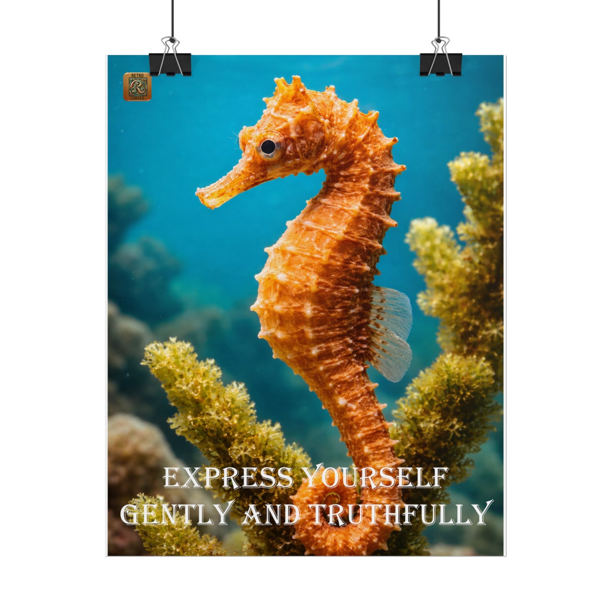Seahorse Inspirational Poster — "Express Yourself Gently and Truthfully" Rolled Art Print