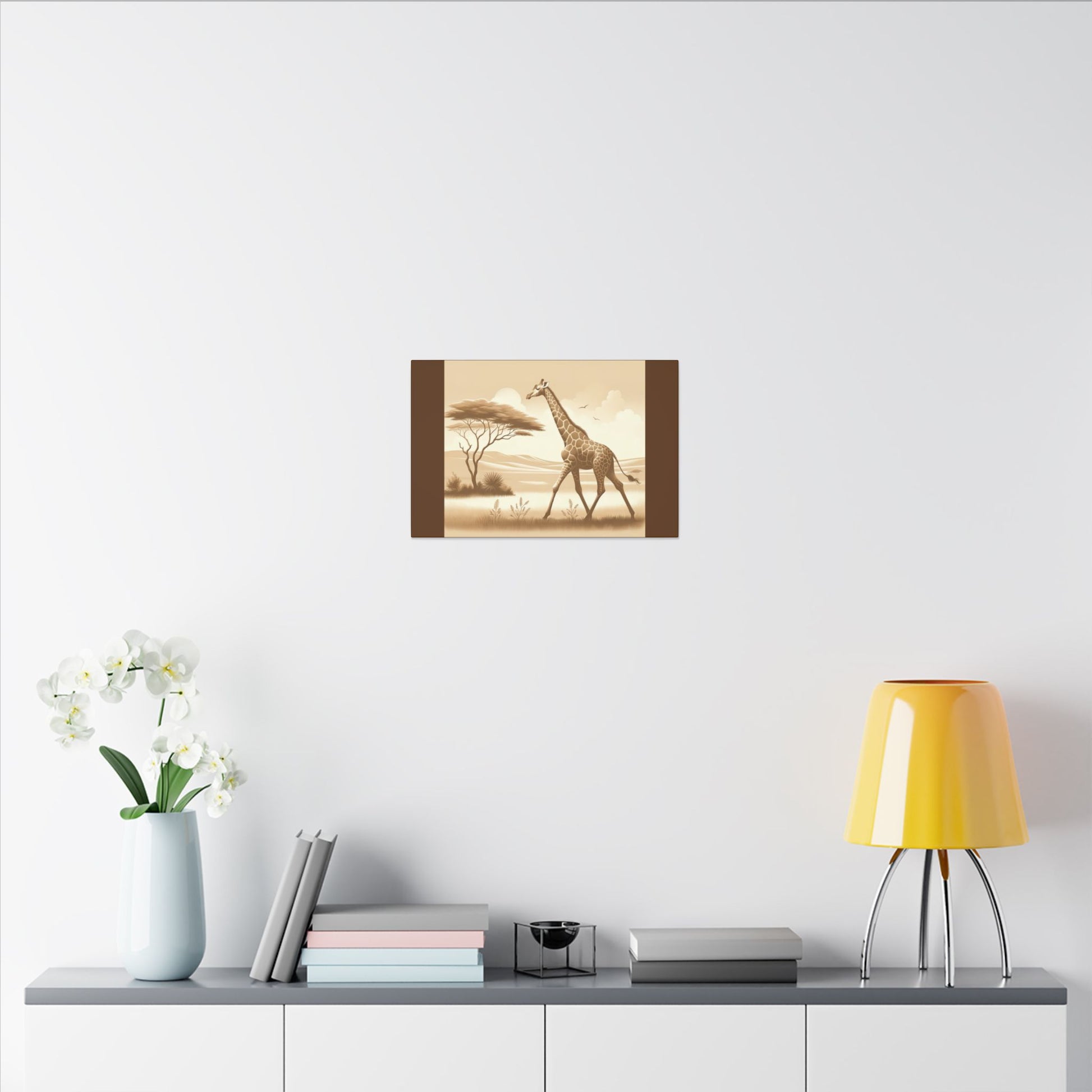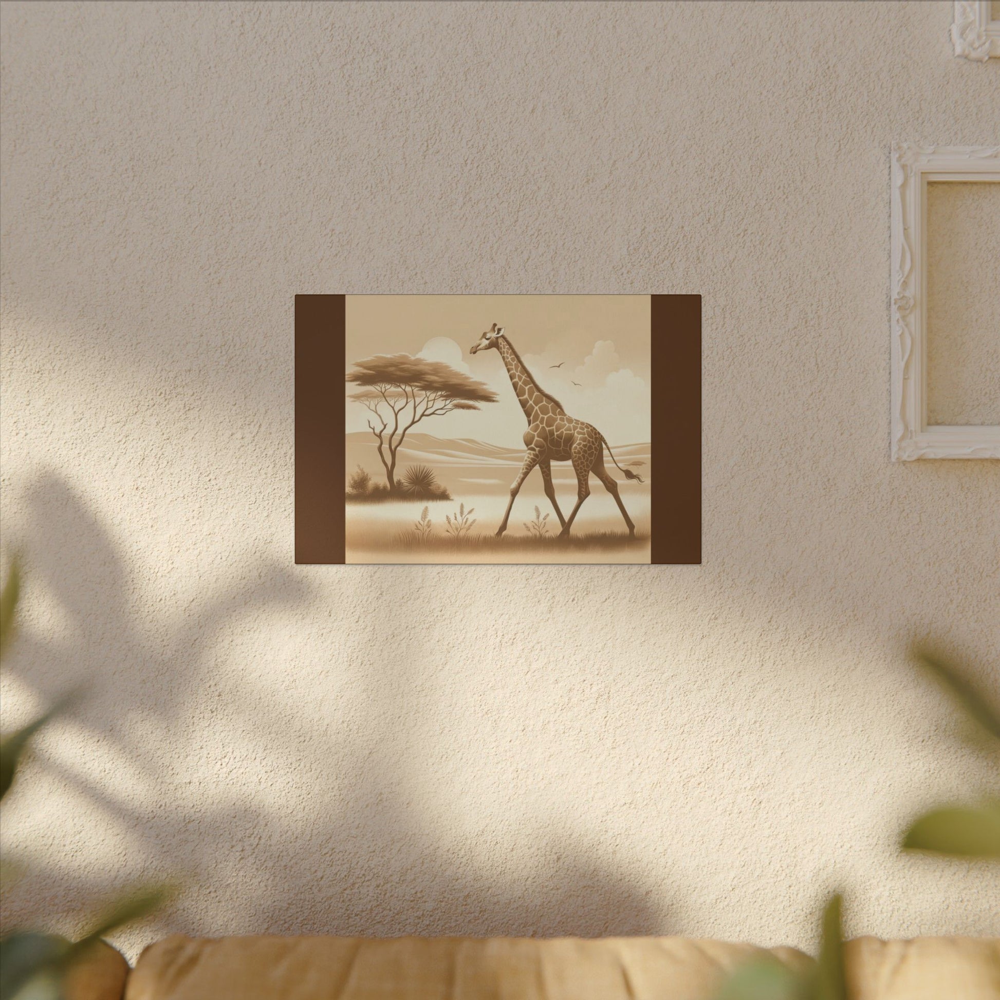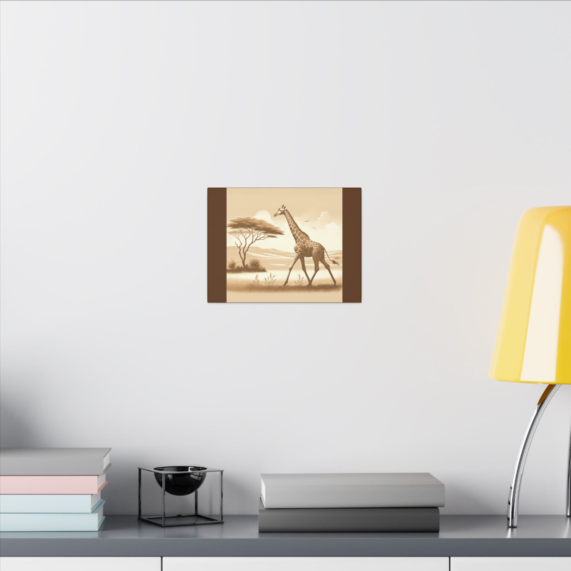 Profitez de la vue sur le safari depuis chez vous avec l'art mural vintage Giraffe sur toile marron. La toile est fabriquée avec un substrat en coton finement texturé de qualité artistique qui reproduit l'image avec une clarté et des détails exceptionnels. Excellent ajout à n'importe quelle pièce et se démarquera dans la chambre des enfants, la crèche et le bureau.