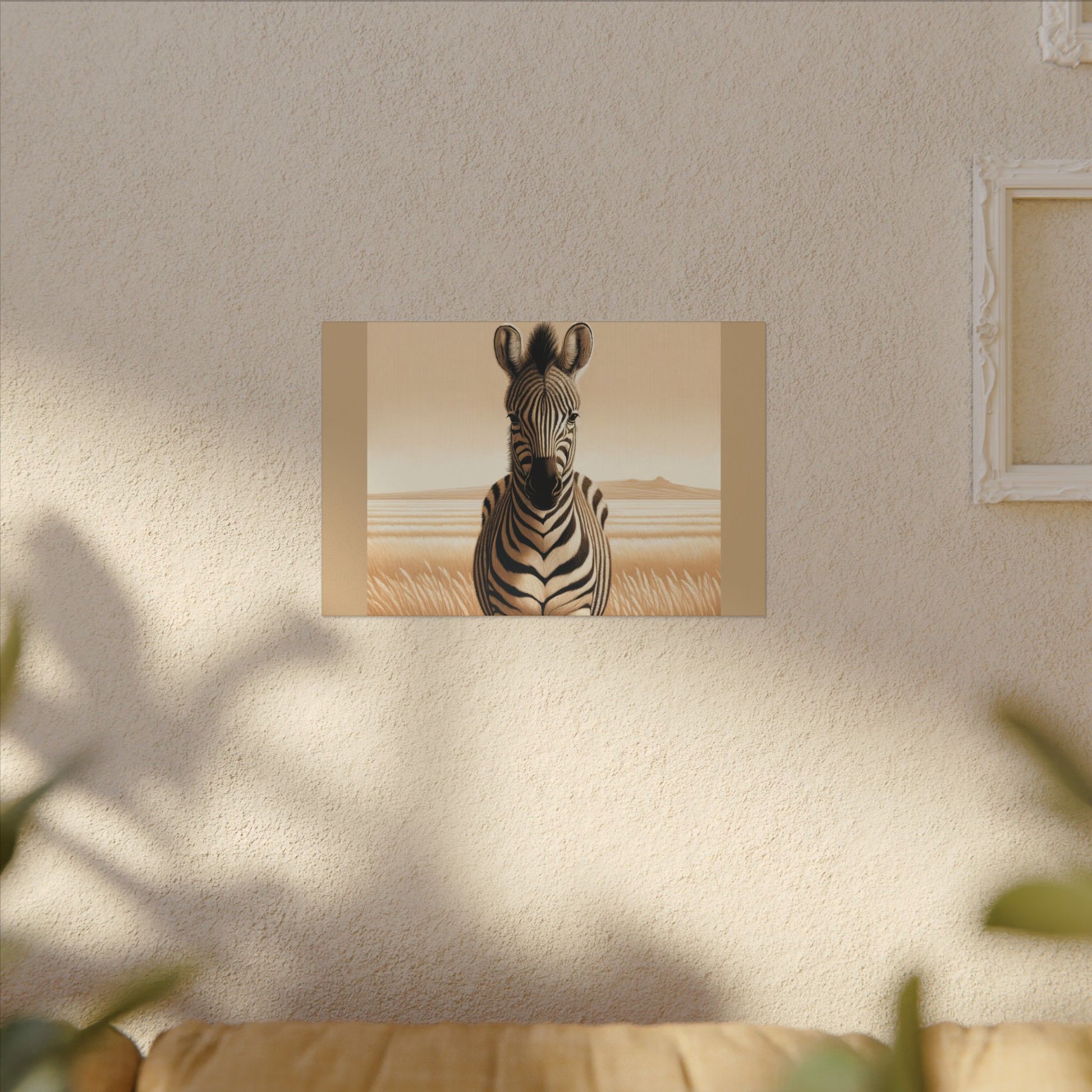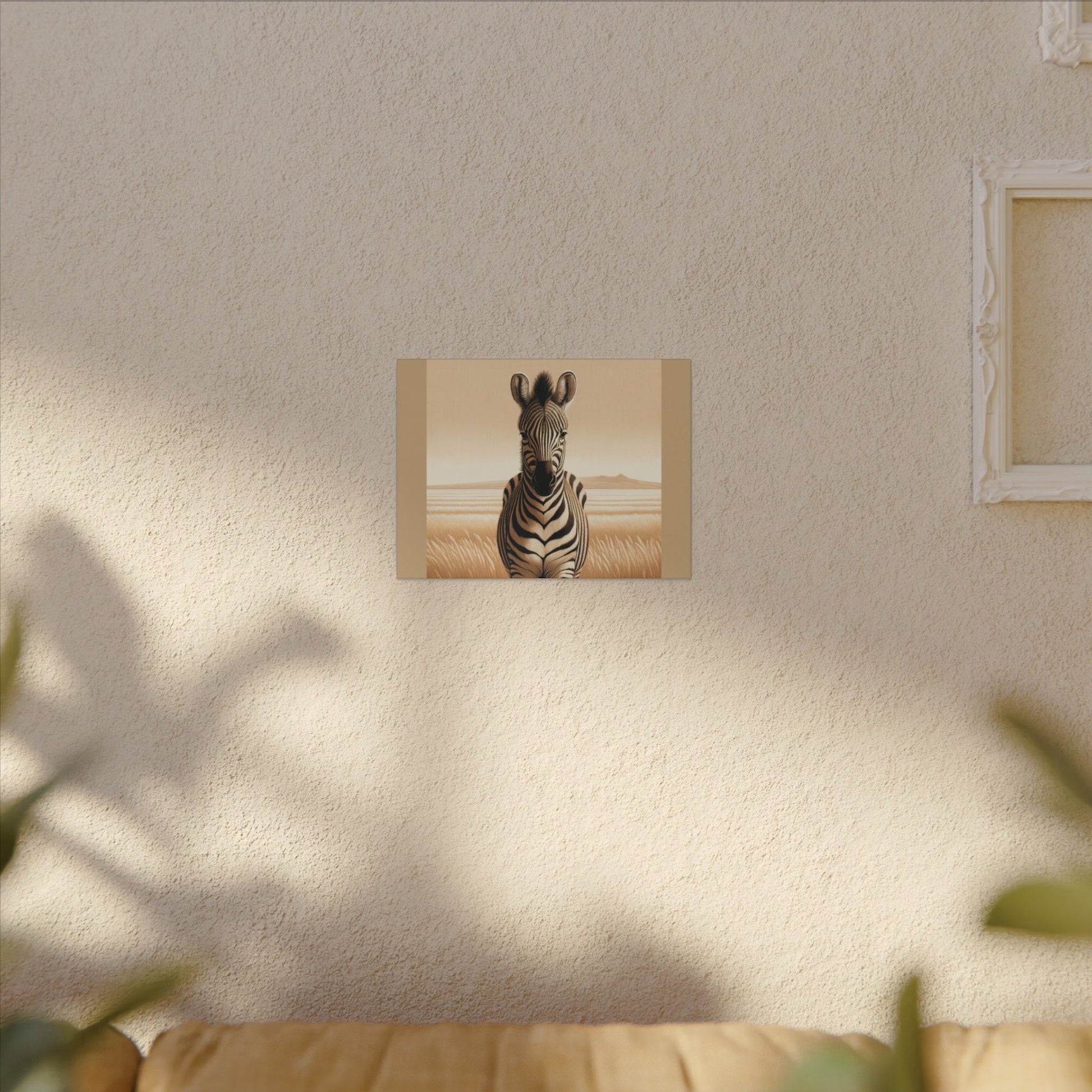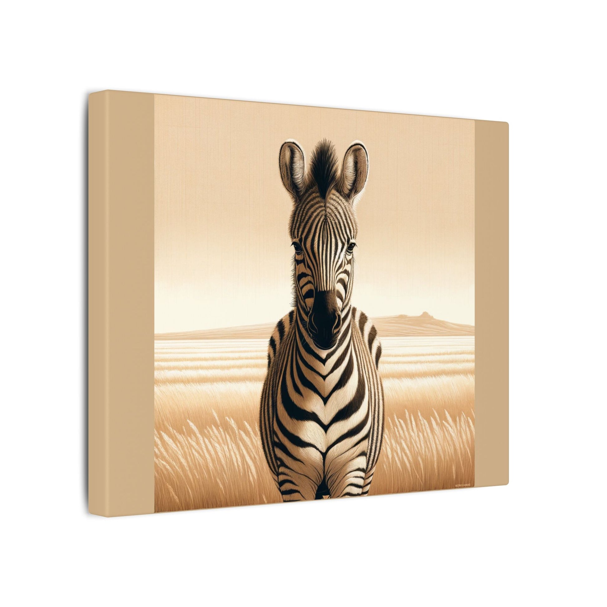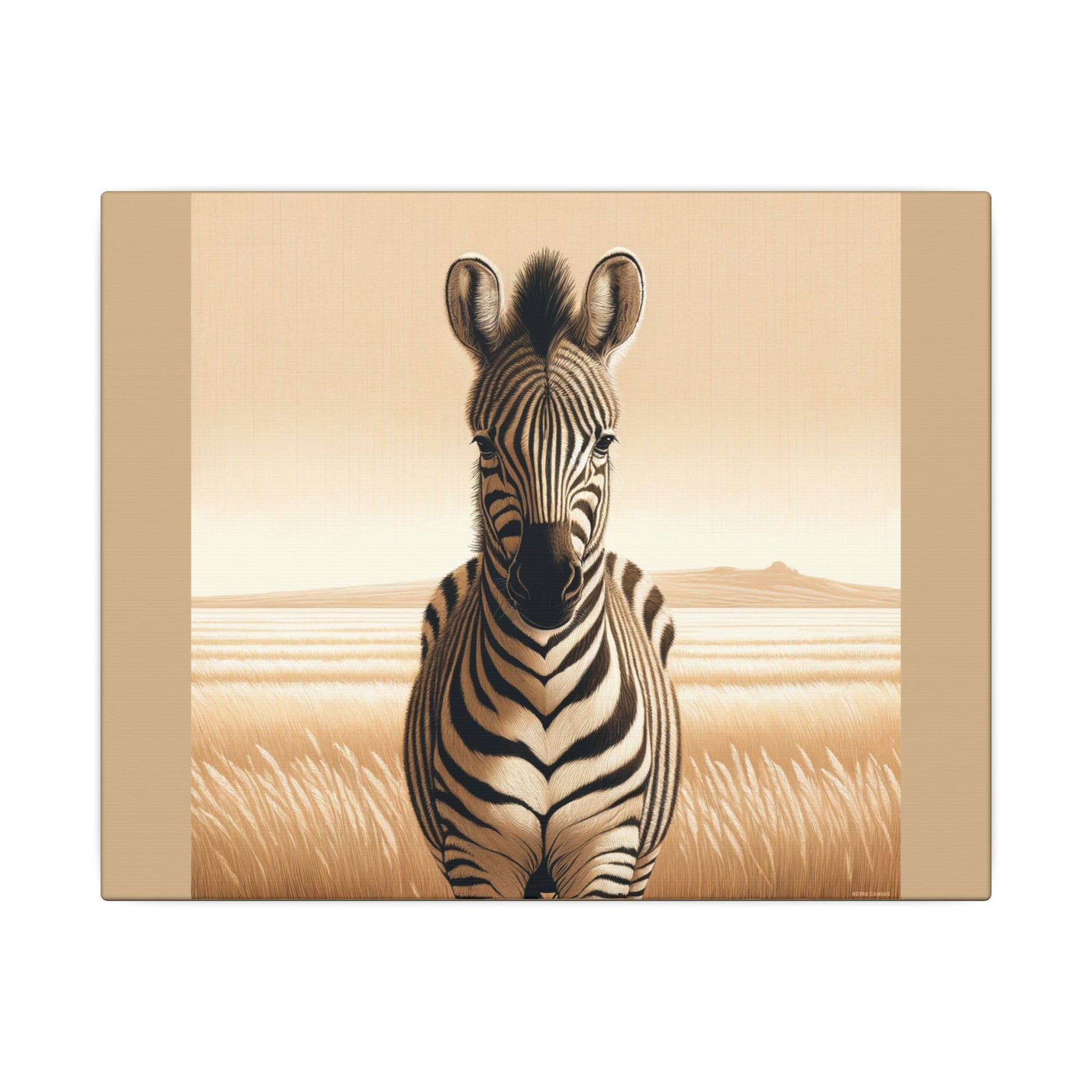 Décoration murale d'inspiration vintage représentant un zèbre de safari sur toile beige. La toile est fabriquée avec un substrat en coton finement texturé de qualité artistique qui reproduit l'image avec une clarté et des détails exceptionnels. Excellent ajout à n'importe quelle pièce et se démarquera dans la chambre des enfants, la crèche, la salle de classe et le bureau.