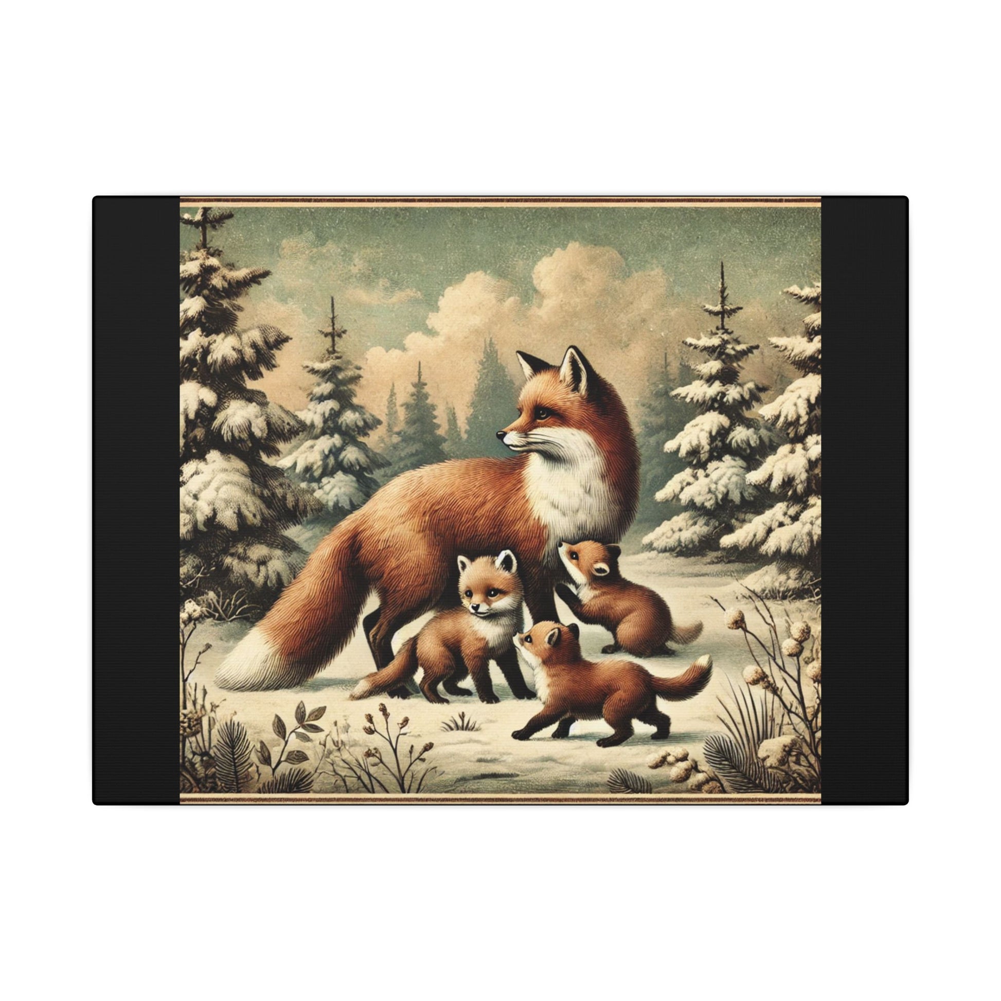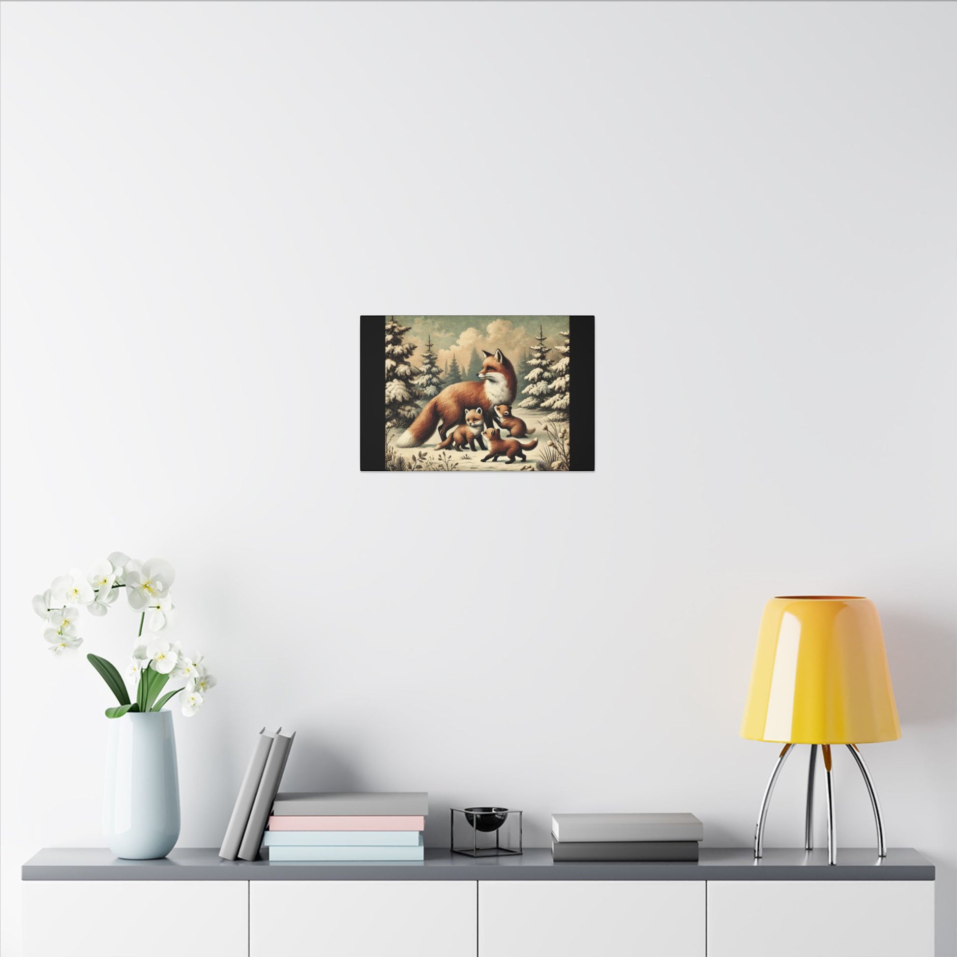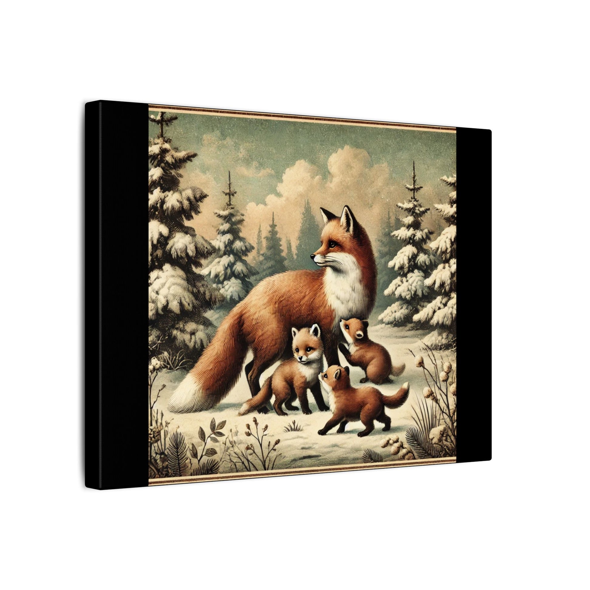 This Fox Family in a Winter Scene Wall Art for Office, Man Cave, Nursery, Kids Bedroom, and more is a great Home Decor addition. Animal Wall Art is a gift idea for housewarmings, baby showers, and offices. Ignite your imagination and explore room makeovers with vintage styled wildlife canvas art.