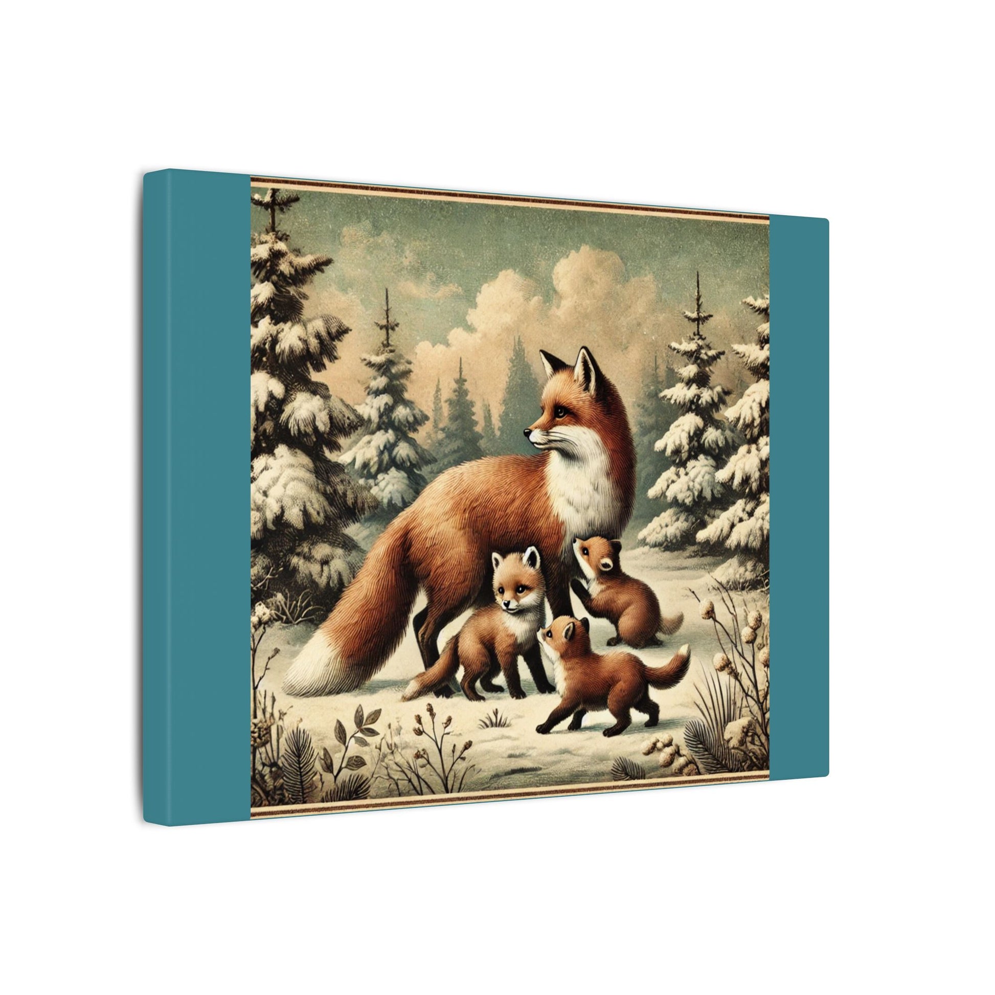 This Fox Family in a Winter Scene Wall Art for Office, Man Cave, Nursery, Kids Bedroom, and more is a great Home Decor addition. Animal Wall Art is a gift idea for housewarmings, baby showers, and offices. Ignite your imagination and explore room makeovers with vintage styled wildlife canvas art.